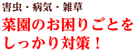 種まき・植え付け前の予防からその後の対処前、豊かな収穫をお手伝いします。菜園生活の商品をご案内します。