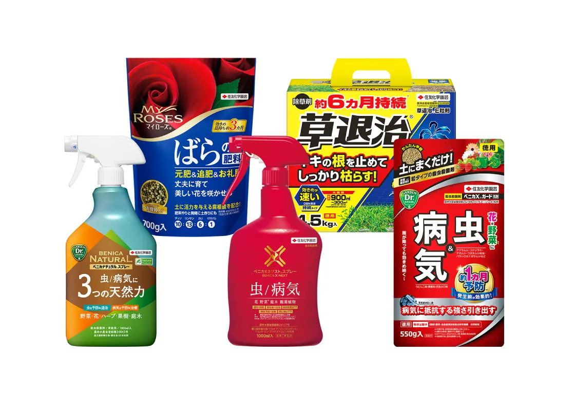 2025年7月1日をもちまして住友化学園芸株式会社は「KINCHO園芸株式会社」へ社名変更しました。一部、旧社名商品(画像・動画・音声)および旧社名での情報表記がございますが、順次変更してまいります。