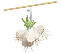 5月下旬~6月下旬、根元を持って引き抜き、収穫しましょう。重ならないように広げて乾かし、その後は風通しのよい明るい日陰に吊るして保管します。