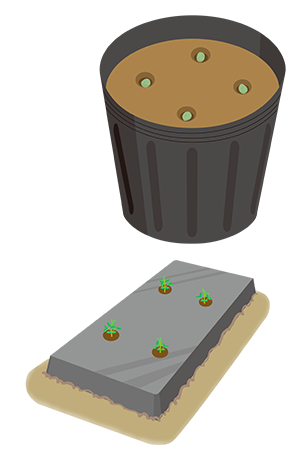 発芽する頃に鳥害を受けやすいので、べたがけなどで覆って防ぎましょう。 または、ポリポットにタネをまいて苗を育ててから植えつけする方法もあります。その場合は、9cmポットにタネを4粒まき、根鉢が回った本葉2~3枚の頃に株間30cmで植えつけます。