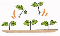 発芽し、双葉が開いた時に3本残し、そのまま育てます。間引く度に、株元に軽く土寄せしておくとよいでしょう。