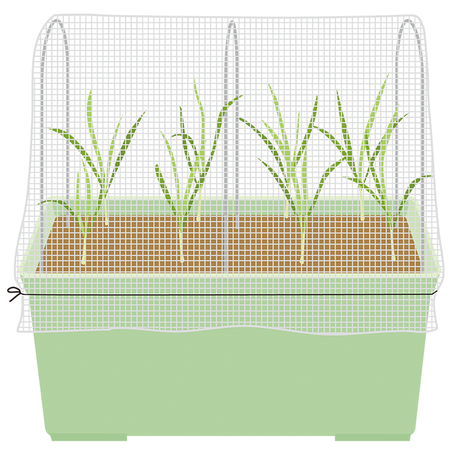 プランターは北風が当たらない南向きの軒下などに置き、乾かし気味に管理します。霜が降りるような場所で、温暖地向きの品種を栽培している場合は、防虫ネットをかけるとよいでしょう。