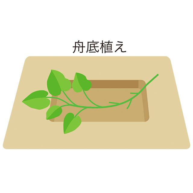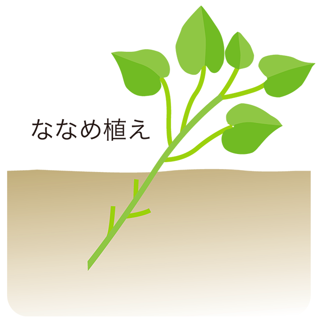 ③苗の植え方は、イラストのように「ななめ植え」と「舟底植え」があります。