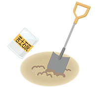 ソラマメはのタネまき時期は、エンドウ同様、10月中旬から11月上旬です。連作に気をつけて植え場所を選び、苦土石灰を1m²当たり150g散布し、よく耕します。次いで1週間後に1m²当たり堆肥2kgと粒状肥料「マイガーデンベジフル」を1m²当たり120gを施して土に混ぜ込みます。40cm間隔に、1カ所2粒ずつのタネを土にさすようにして埋めます。このとき、タネの黒い部分(おはぐろ)を下向きにして、タネをさすのがポイントです。発芽するころに鳥害を受けやすいので、べたがけ等で覆っておくとよいでしょう。