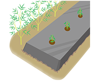 また、ポリポットにタネをまいて、苗を育ててから植えつける方法もあります。その場合は、9cmポットにタネを2粒まき、本葉2~3枚で、底穴から根が少しのぞくぐらい根鉢が回ったら、株間を40cmとって植えつけます。