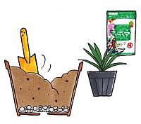 肥料が多過ぎても根腐れなどの原因になるため、通常の植物よりも少なめに施します。鉢植えでは元肥として、用土1ℓ当たり2.5gの粒状肥料「マイガーデン花・野菜用」、 「マイガーデン植物全般用」を、用土に混ぜて植えつけます。