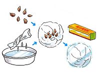 アネモネの球根は、植えつけ前に前処理を行ないます。濡らして軽く絞ったタオルを、乾燥した状態の球根に巻きつけて、さらに食品用ラップで覆うか、ポリ袋に入れます。ひと晩冷蔵庫の野菜室に置くと、翌朝には、球根は水を吸ってパンパンに膨れています。球根は、尖っている方を下向きにして植えつけます。よく間違えるので、気をつけましょう。