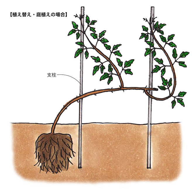2年生苗が流通する。まず鉢植えにして育てる。植えつけ時につるはカットしなくてよい。 |