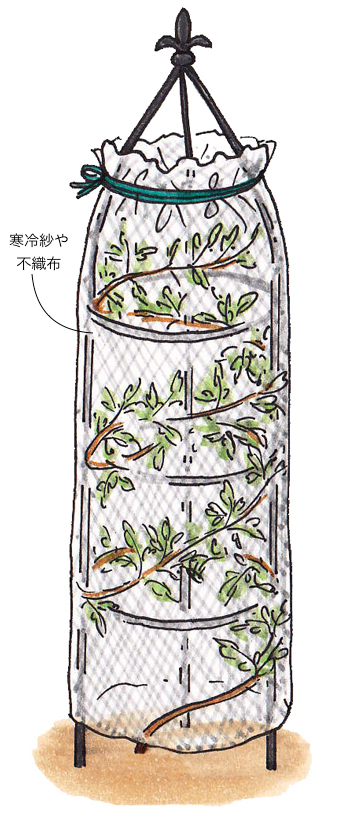 常緑性の種類は寒さに強いものの、雪や寒風が苦手です。積雪がある地域などでは、株に不織布をまいたりして、防寒対策を行ないます。