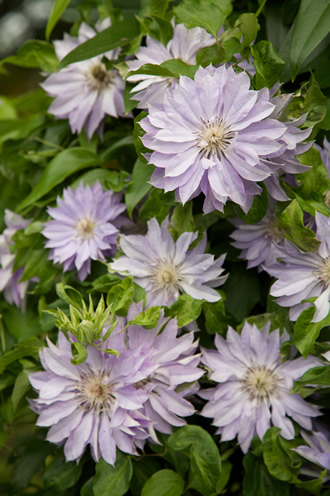 前出のアーマンディーがまず咲き、続いてモンタナ系の品種が開花して、春の庭を絶え間なく彩る。
