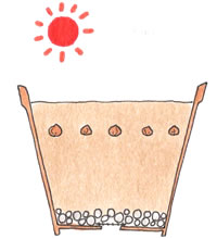 鉢植えの場合は、4号鉢に4~5球を植えます。花壇に植える場合は、水はけのよい場所を選んで植えつけます。やがて、12月~1月ぐらいになると、球根は小さな芽を出し始めます。クロッカスはとても寒さに強いので、雪が積もっても大丈夫です。花は、気候によって異なりますが、2月中旬~3月中旬ごろに開花します。