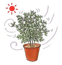 鉢植えでは、水はけと水もちのバランスがよい培養土を用いて植えつけましょう。