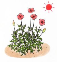 ハナビシソウは、日なたを好みます。日当たりが悪いと生育が緩慢になり、花も葉も小さくなります。寒さに強く、特に防寒せずに冬を乗り越えることができますが、苗がまだ小さい場合は、不織布などをかけて、強い寒さから守りましょう。