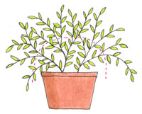 梅雨どきに、株が蒸れることがあります。蒸れを防止し、花数をふやすために、梅雨期後半に切り戻しをします。草丈の1/3程度まで、思い切って茎を切り詰めます。