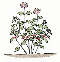 切り戻した枝を使って、さし木でふやすことができます。枝を2節ごとに切りそろえ、ついた葉を半分の大きさに切り落とします。枝の切り口を30分程度水につけてから、市販のさし木用土にさします。枝の切り口に植物成長調整剤「ルートン」を薄くまぶしておくと、発根が促されます。