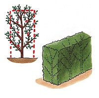 剪定せずにそのまま育てると、樹高が5m以上となり、下枝も枯れてしまいます。また、よく萌芽するので、生け垣として育てるためには、刈り込んで管理することが前提となります。
