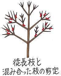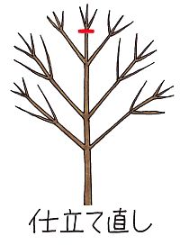 大きくなりすぎた木を小さく仕立て直すときには、まず幹を好みの高さで切り、樹形や大きさを考えて、幹から直接出ている太い枝を切り詰めます。剪定の適期は11月~2月です。春には枝からたくさん新梢が出るで、落葉期に必要な枝を残し、細い枝は基部から剪定します。冬に剪定した場合は、翌春の花は咲きません。また、仕立て直したときには、2年間は開花が見込めません。
