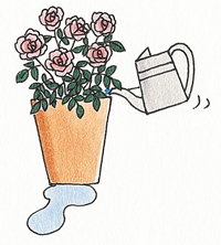 乾いたらしっかり水をやります。ミニバラは一度根鉢を乾かすと枯死することがよくあります。但し、水のやり過ぎは、根腐れの原因になりますので注意しましょう。花に水かかかると傷むので、花の鑑賞期間を長くするためにも、水は根元へ静かに注ぐように心がけましょう。