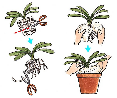 その際、剪定バサミやクラフトバサミの刃は、ライターの炎でよく焼いて消毒したものを使います。コチョウランは病気にかかりやすいので、特に注意して作業しましょう。
