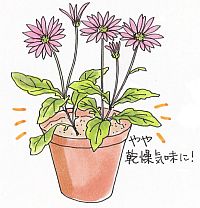 鉢植えの場合は、土の表面が乾いたらたっぷりと水をやります。湿気の多い環境は苦手なので、やや乾燥気味に育てるとよいでしょう。