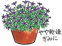日当たりを好む植物です。日当たりが悪い場所で管理すると徒長したり、花が少なくなり、花色も悪くなります。