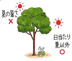 日当たりのよい場所に植えつけます。日当たりの悪い場所では、生育が悪くなって徒長します。夏の暑さが苦手なので、暑い時期は、明るい日陰などで管理します。