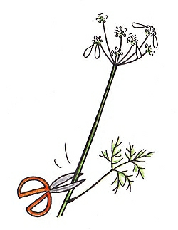 花がら摘みは、まめに行ないましょう。花が終わった花茎をハサミで切り取ります。
