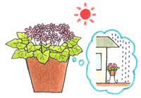 サイネリアは日当たりを好む植物です。日当たりが悪いと花数が減ったり、花色が薄くなったりしますので、よく日に当てましょう。また、雨に当たると傷みやすいので、軒下に置くとよいでしょう。耐寒性が弱いので、霜にも当てないことが大切です。