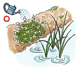 ポットで育苗してから花壇に植えると、活着がよくなります。サギゴケは田んぼの畔などに自生するため、やや湿地のグランドカバーの素材としても優れています。植え場所は、やや湿り気のある場所を選びましょう。