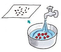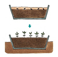 タネまきでふやす場合は、6月に黒熟した果実を収穫し、中にある小さなタネを取り出します。流れないように、果実をざるなどに入れて、流水で果肉を洗い流すとよいでしょう。タネはビニール袋に入れ、乾燥させないように冷蔵庫(3~5℃程度の部屋)で保存して秋から冬にまくか、保存せずにすぐにまきます。どちらの時期にまいても、翌年の春に発芽します。タネをまいて育てた苗床は、用土の水分を保つために、深さの半分ほどを土に埋めてもよいでしょう。