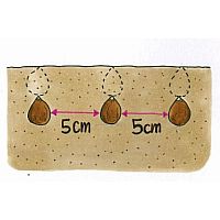 庭植えの場合は、事前に腐葉土をすき込んでフカフカの土を作ってから球根を植えつけます。球根と球根の間隔は、だいたい5cm程度とり、球根1個分の深さに植えます。球根の間隔をあまり離さない方が、開花したときに寂しくないでしょう。