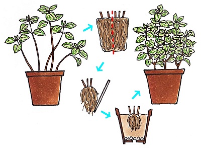 切り戻した際、根鉢の古土を半分程度落として、新しい土で植え直すことも可能です。