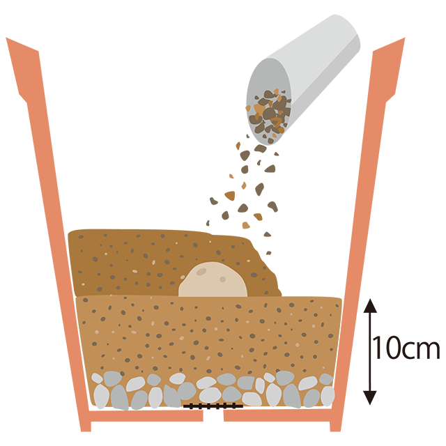 鉢やプランターの底から10cm程度まで用土を入れ、