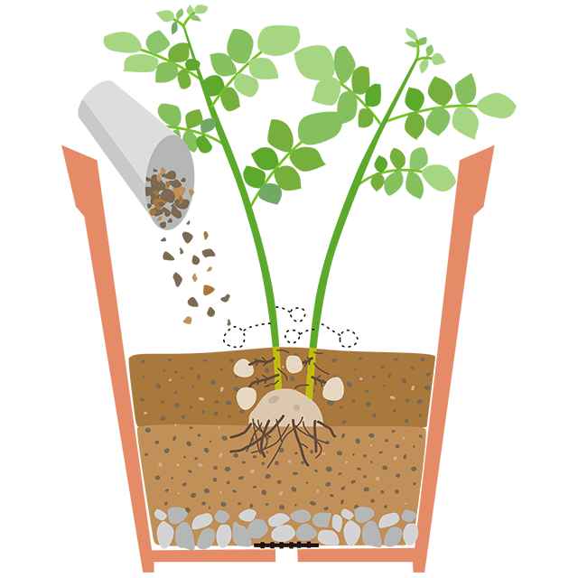 清潔で水はけがよく、粒子の細かい用土を利用すれば、菜園よりも、もっときれいな肌のジャガイモができます。