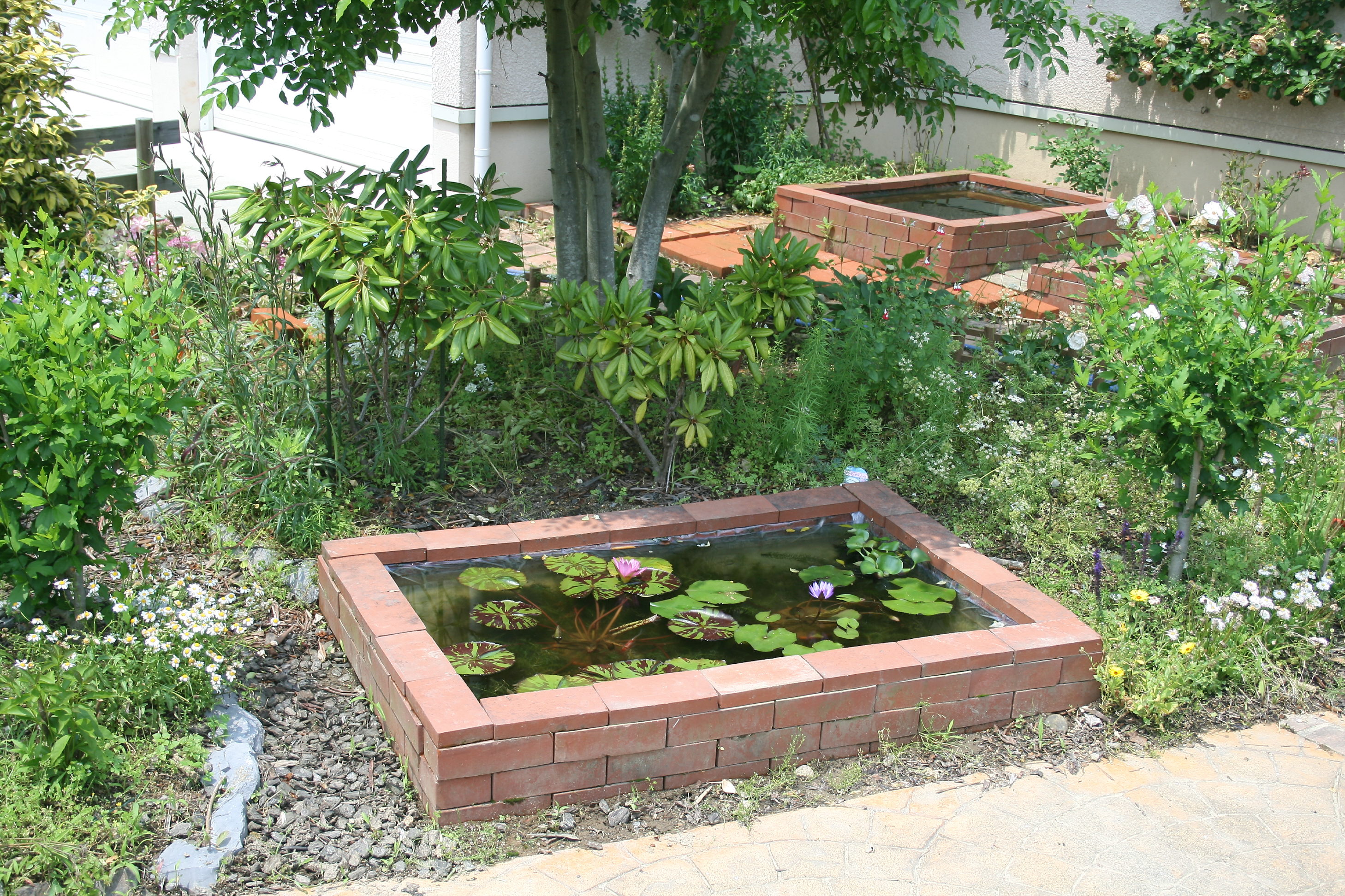 場所があれば、レンガを3段積んで枠を作り、厚手(0.15.~0.2㎜)のビニールシートを敷けばインスタントに池を作れます。水量が多いので水温も安定し真夏でも咲きやすくなります。