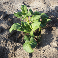 8月下旬〜9月中旬に植え付けたジャガイモのタネイモからは、芽が伸びてきているでしょうか。高さ10~15cmのころに太くしっかりした芽を1〜2本選んで残し、他の芽はかき取ります。