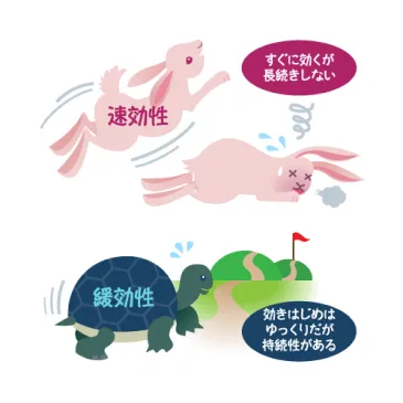 肥料を与えた時から効き始め、徐々に溶け出して長期間効果の続く肥料です。元肥及び追肥のいずれにも使用できます。粒状の被覆複合肥料(コーティング肥料)やスティック状の肥料は、このタイプで、用途の広い肥料です。