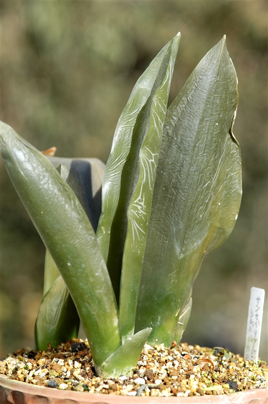 葉に白い筋がある。