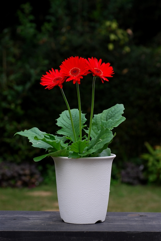 プラスチック鉢は非多孔質で吸水性や通気性がないので、用土の乾きが遅い。鉢土の表面が白っぽく乾いたときが水やりの目安。