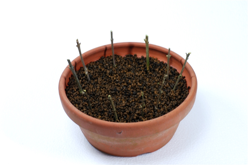 樹木は芽吹く前の休眠挿しか、梅雨挿し(緑枝挿し)にすると発根も容易です。