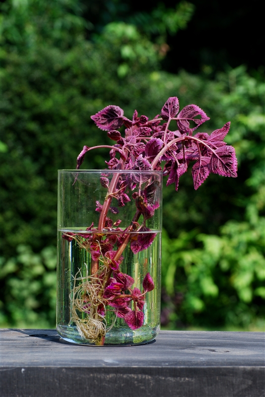 水を入れたコップなどに切った枝を挿しておくだけで発根する植物もある。これも挿し木の方法で、コリウス、バジル、ポトス、アイビー、ヤナギ、サルスベリなどで行え、こまめに水を変え腐らせないように注意する。育ったらポットに鉢上げする。