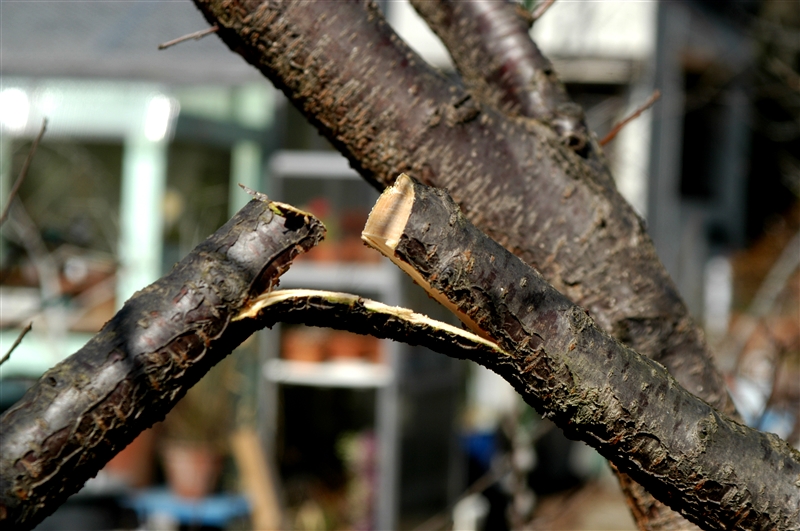 ③ 途中で落ちるので、枝元まで裂けることはない。