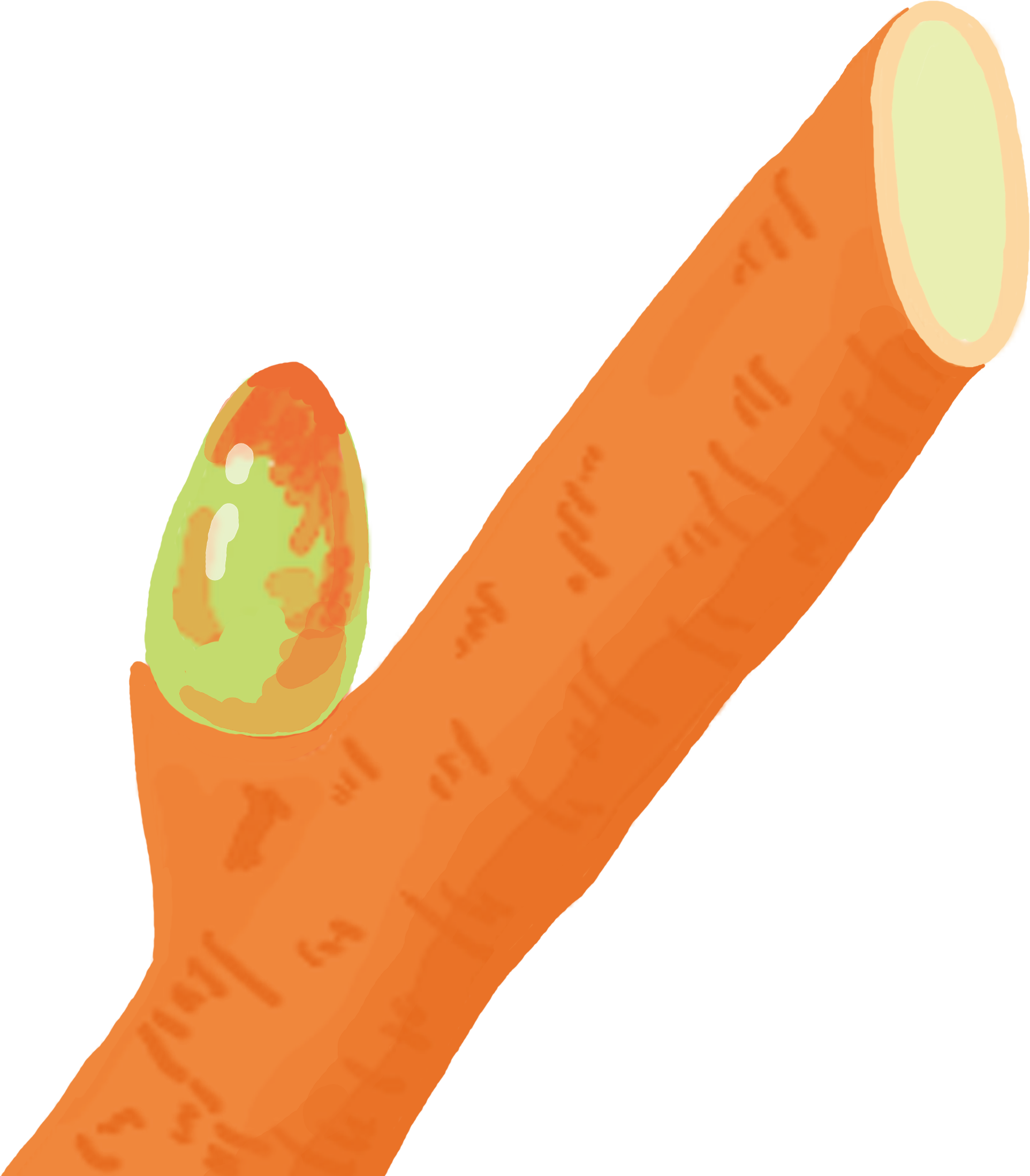 芽から下に深く切りすぎると、切り口が乾燥して芽が枯れやすい。