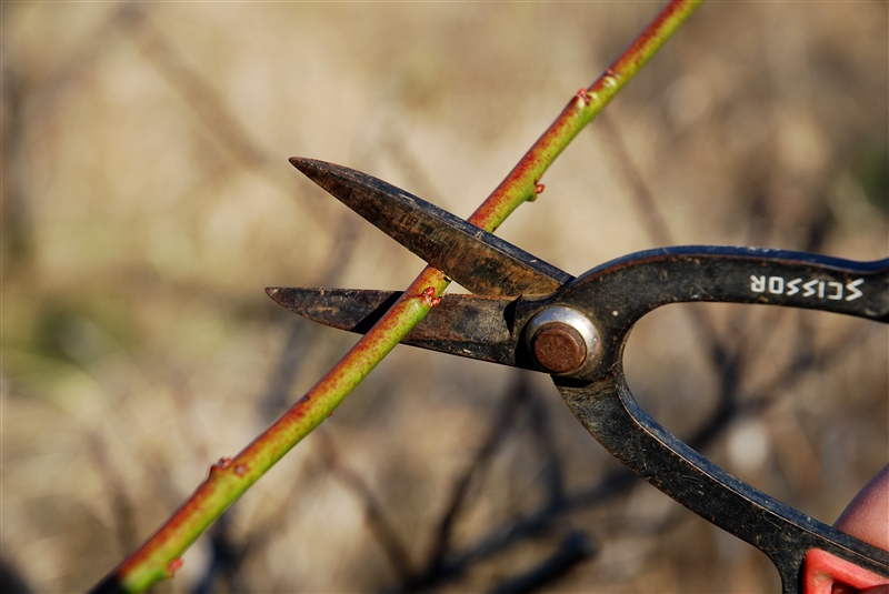 芽の上を長く残して切ると、枯れこむ部分が長すぎるのでふつうは行わない。