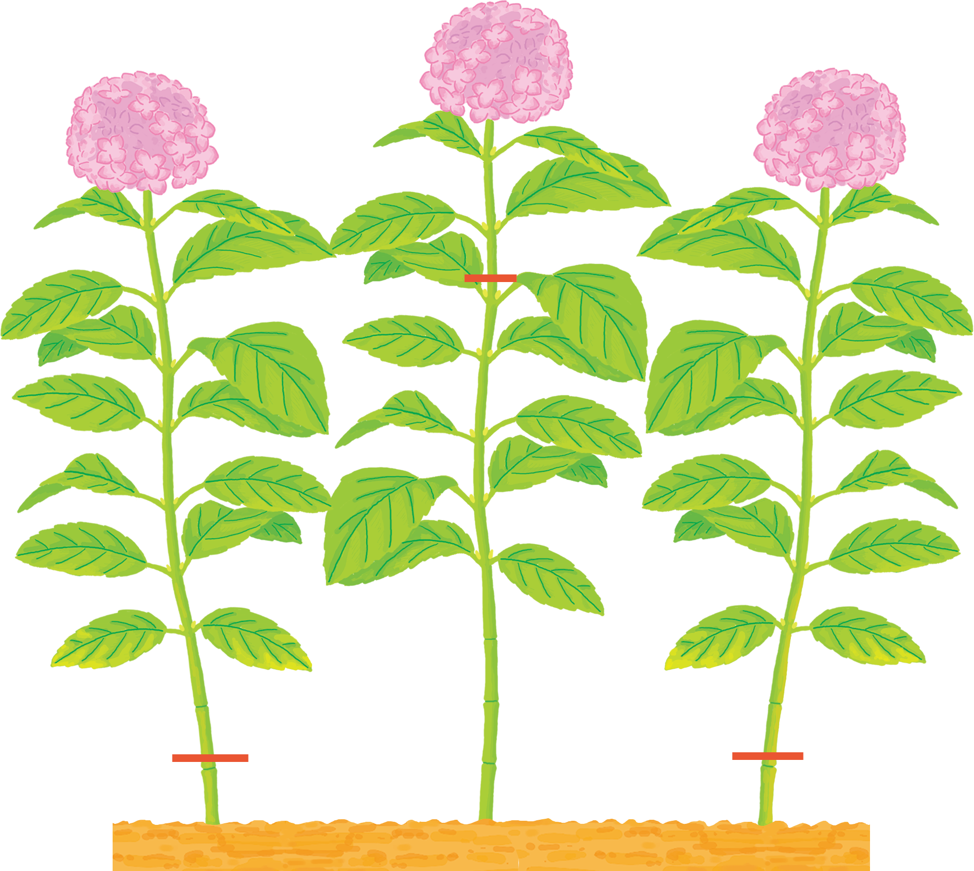 元気のよい今年伸びた枝(新梢)の先にできる芽(頂芽)が花芽になり、翌年に開花するタイプ。このタイプは、花芽がつくられてから枝先を刈り込むと翌年花が咲かなくなるので、花後すぐ剪定し、残した芽から元気のよい枝を出させるようにします。