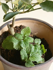 [注意]「ベニカベジフルスプレー」は、ハーブ類に適用がありません。キンカンのアブラムシやミカンハモグリガ退治に使用する際は、レモンバームにかからないよう、注意してください。