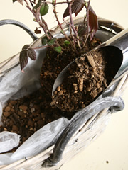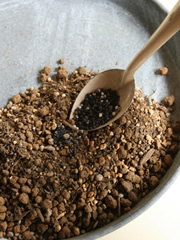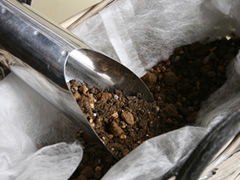 Process 1 のバスケットにProcess 2 の培養土を、鉢底石が隠れるぐらいに入れます。