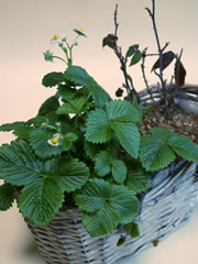 今回は矮性品種のラズベリーに、春から秋まで果実がつくワイルドストロベリーを寄せ植えにして、清楚な花とかわいい果実を楽しみます。