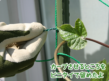 ネットに勝手に絡まったつるがあれば、1回ほどいて、つるを配り直すんだって