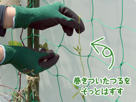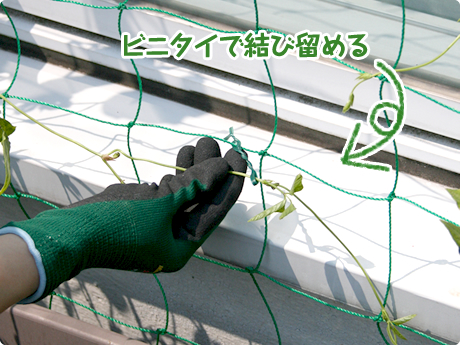 横方向へ案内。つるはビニタイで結び留めるよ♪